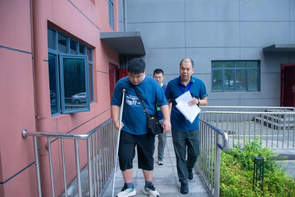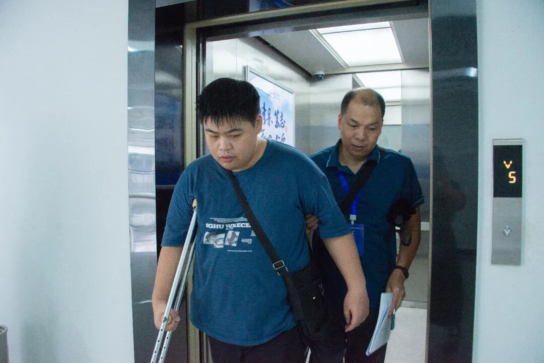 武汉交通职业学院考点的一名行动不便考生在工作人员的温情护考下顺利参加法考。该考生行动不便,发现所在考场没有电梯,倍感焦急,抱着试一试的心态反映了自己的困难,武汉市司法局本着“从严治考、规范管理、热情服务”的总原则,立即着手予以解决,安排专人全程帮助考生,使其顺利参加考试。(经本人许可同意出镜)