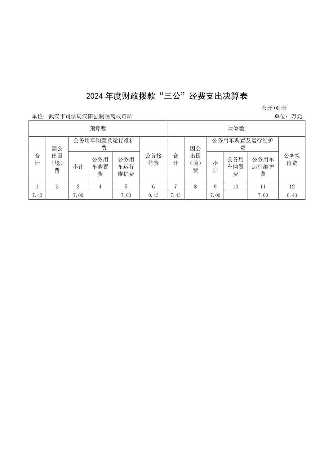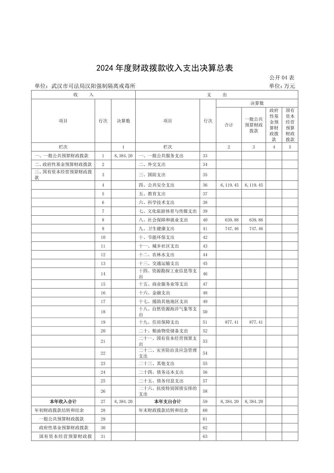 2024年度武汉市司法局汉阳强制隔离戒毒所单位决算公开
