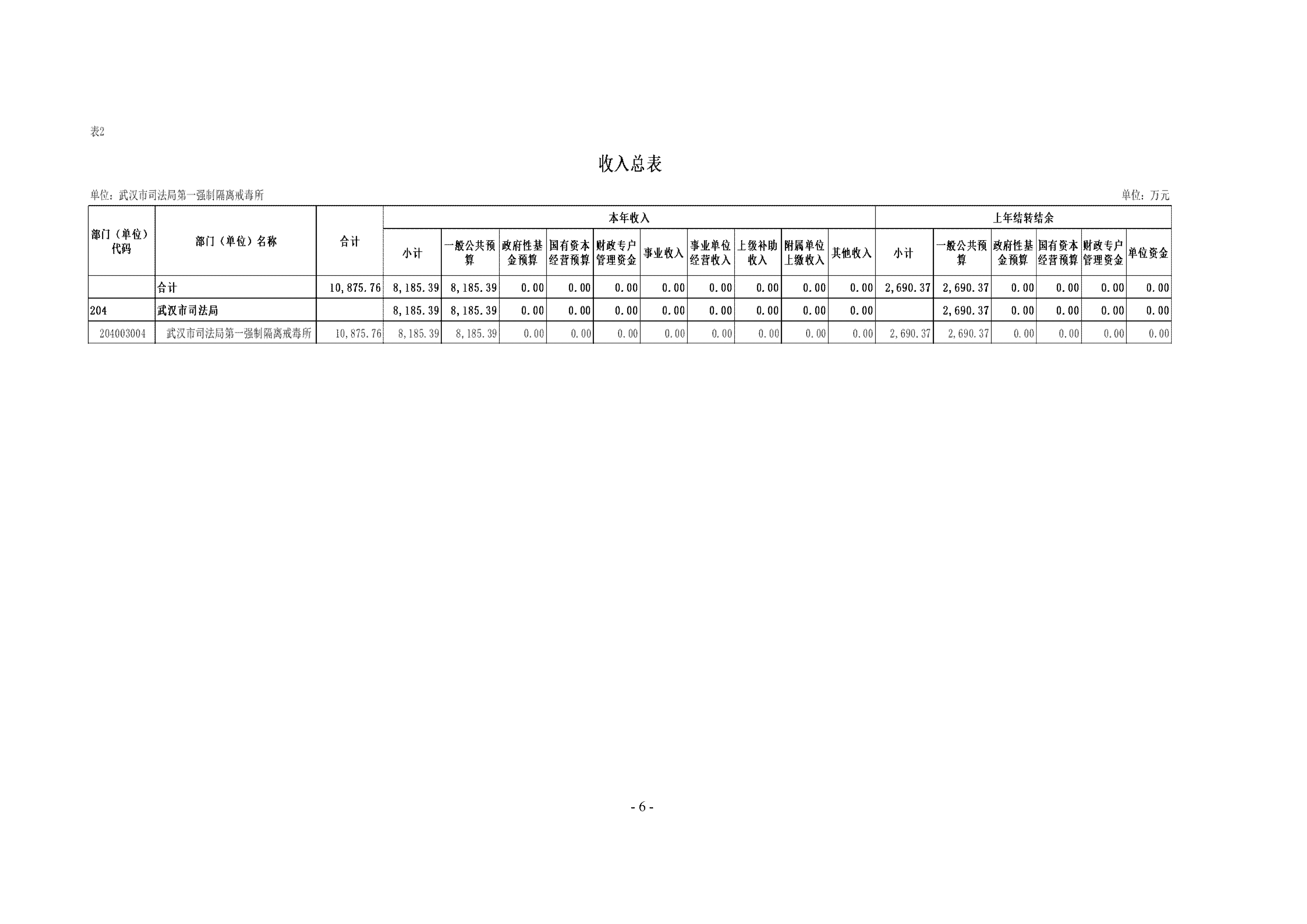 武汉市司法局第一强制隔离戒毒所2026年单位预算