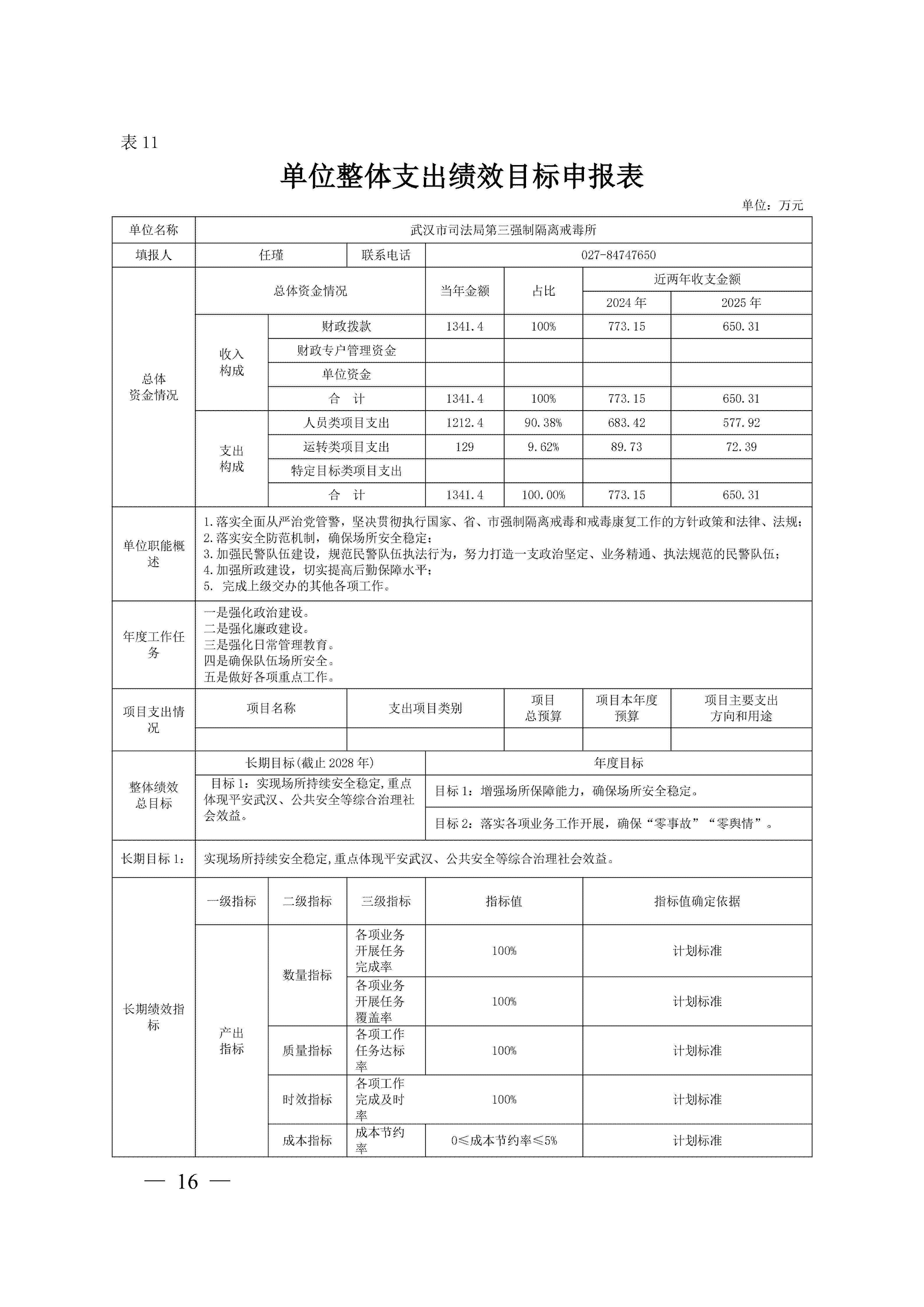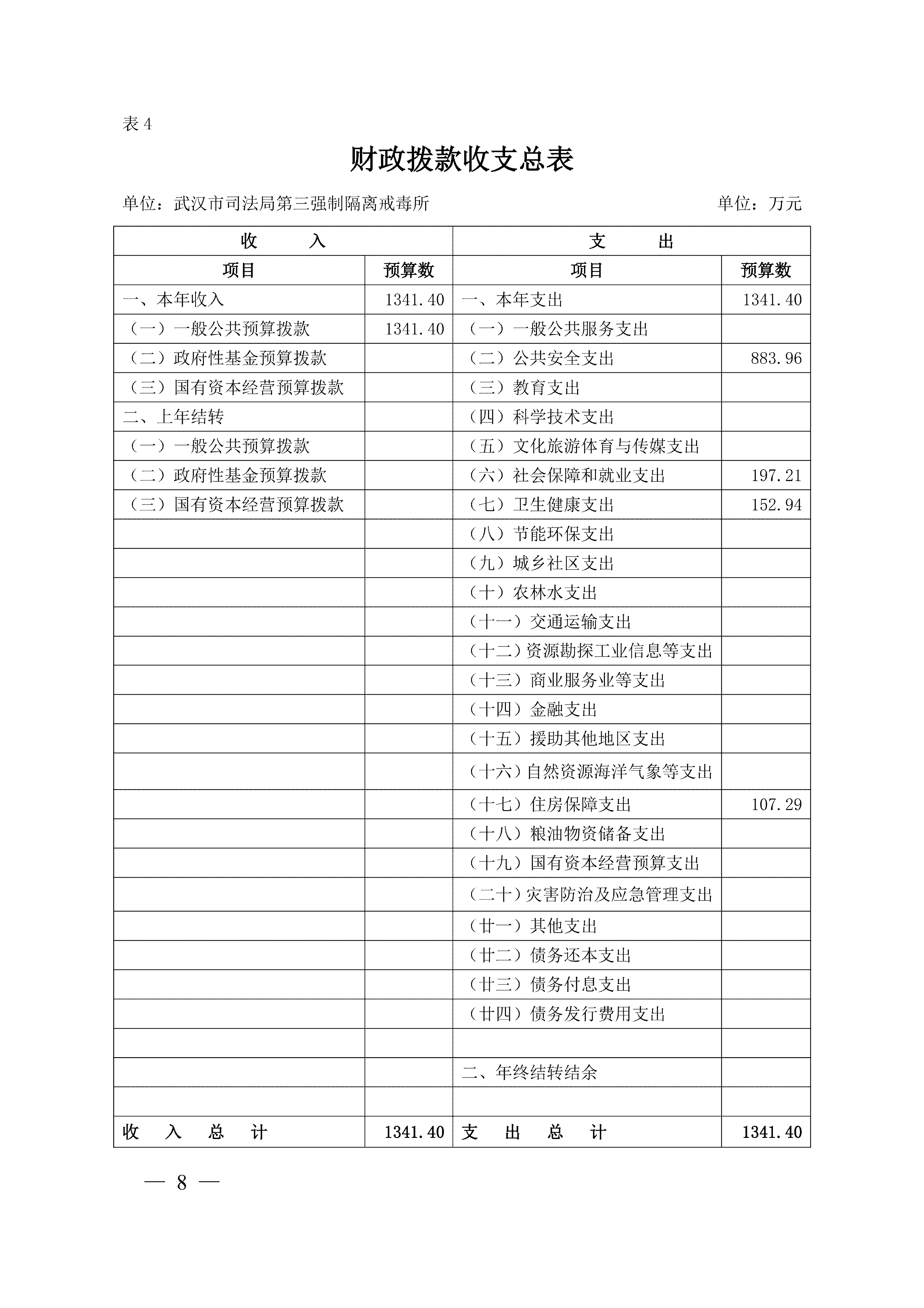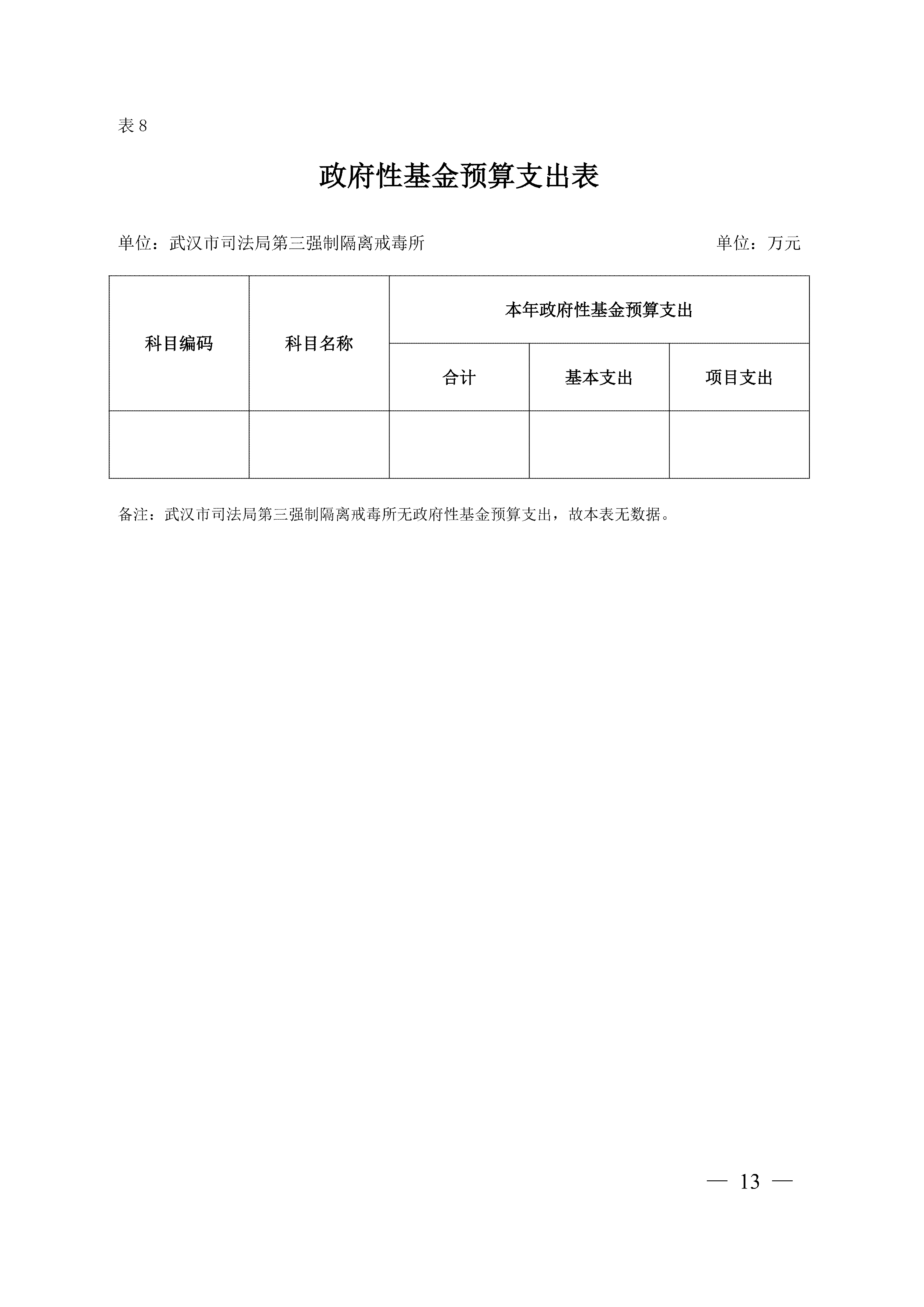 武汉市司法局第三强制隔离戒毒所2026年单位预算
