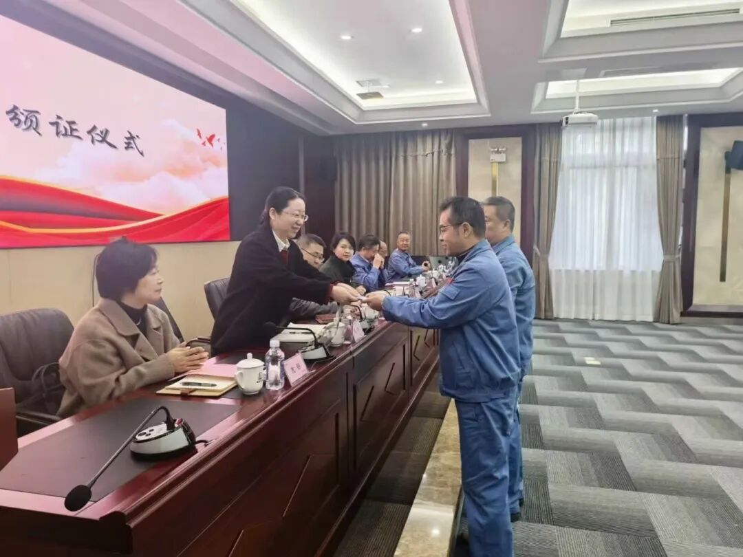 仪式现场,区委政法委副书记谢玲为调解员代表授予了调解员工作证,寓意着调解员们将正式持证上岗,为企业的矛盾纠纷化解工作贡献力量。