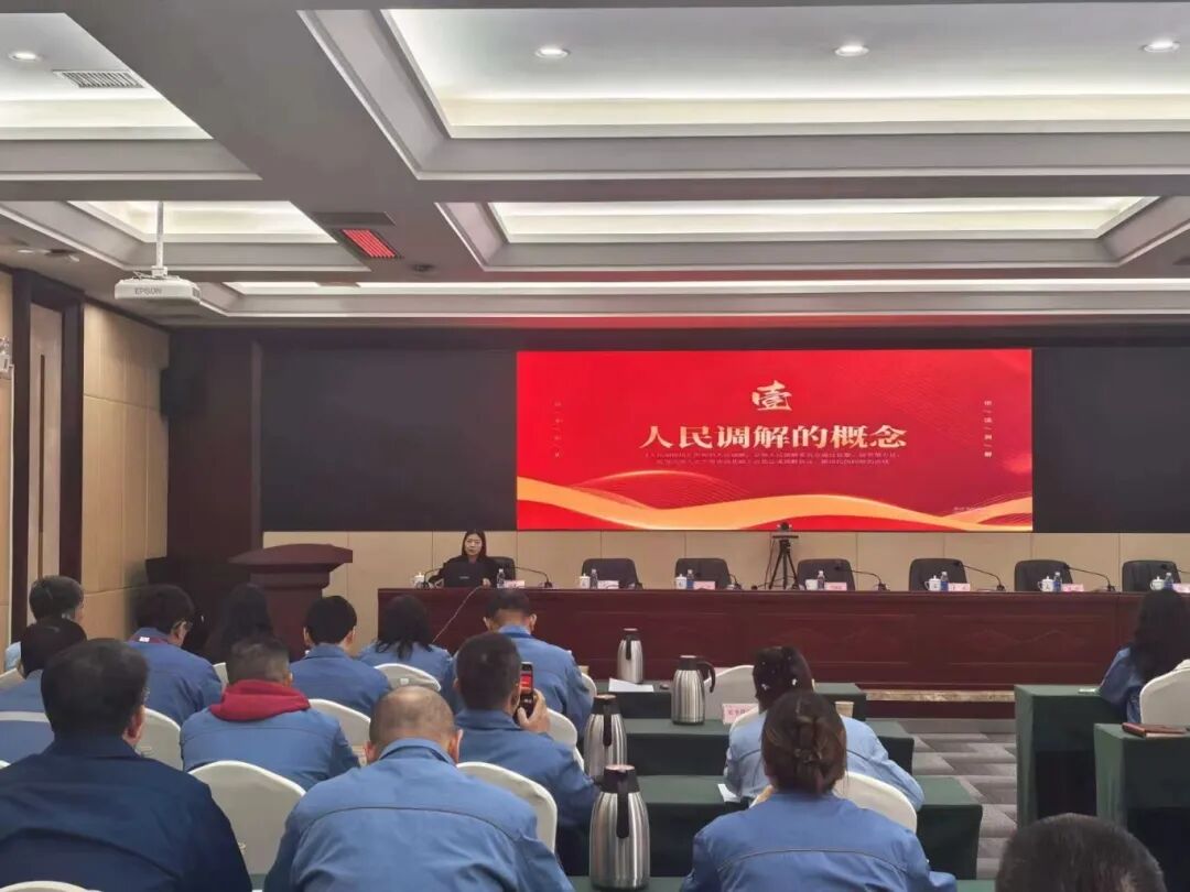 活动最后,依托青山区“党校+调解”学院开展业务培训,由青山镇司法所负责人刘俊婷为全体调解员授课。培训内容紧密结合企业实际,聚焦人民调解流程、常见矛盾纠纷类型、调解技巧等,旨在快速提升调解员的实务操作能力,为调委会后续有效运作奠定坚实基础。