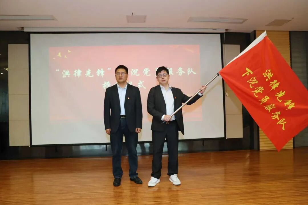 启动仪式上,区委常委、组织部部长戴意涛为“洪律先锋”下沉党员服务队代表吴跃华授旗,辖区各街道(乡)党(工)委副书记与律师事务所党支部代表现场结对,并发放法律服务手卡。红旗猎猎,责任在肩,党员律师扎根基层、服务为民的“集结号”已然吹响。“一旗一卡”,构建起组织对接、服务落地的坚实桥梁,让基层法治需求“有单可点”,让专业法律服务“有呼必应”。